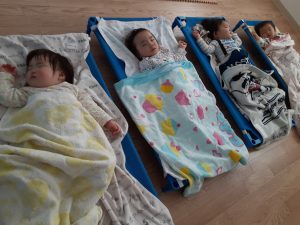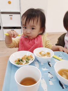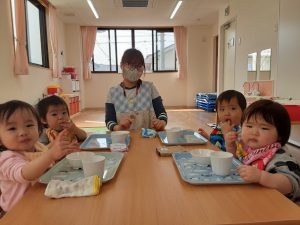 おいしいおやつを食べたら優しい先生たちと仲良く触れ合い遊び