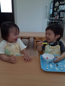 みんながおなかいっぱいでお昼寝にいってもまだまだ食べています
