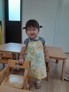 看護師の先生たちが私たちのために手作りのエプロン作ってくれたんだよ