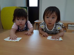 この雑巾、私たちが遊べるように先生作ってくれたんだって~
