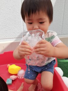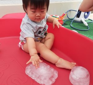 今日はみんなで仲良く氷遊びです❄