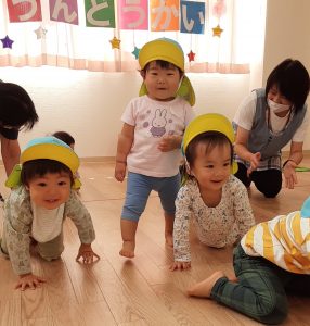 最初は~ 「準備体操♪ピーカーブー♪」です。