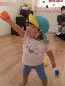 ふたばぐみのお友達、と~っても上手にボールを入れました!!