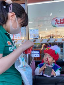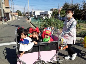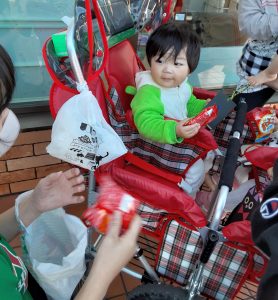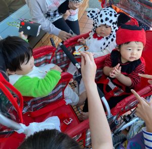 「トリックオアトリート!!」(お菓子をくれなきゃいたずらしちゃうぞ~)を合言葉に街を練り歩きます。