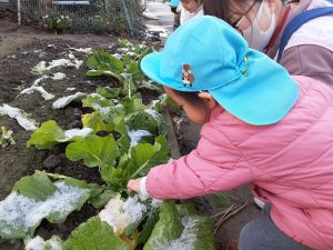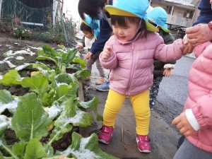 そら組のお友達はフィリオ末広保育所の近くにと~ってもかわいらしい雪だるまさんを見つけました!!