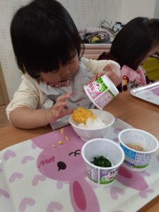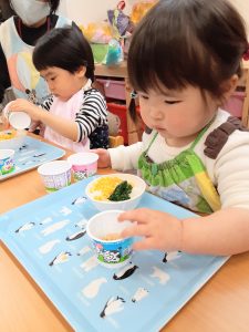 今日はみんなの大好き調理員さんがひなまつりのお祝いに
