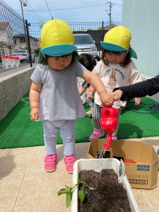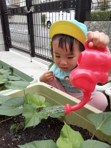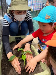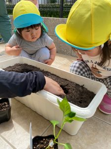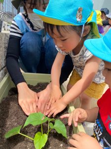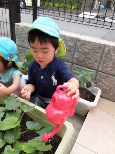 そら組さんは先生と一緒にきゅうりを植えます!!