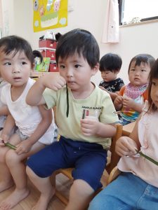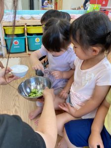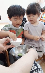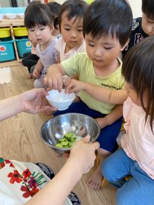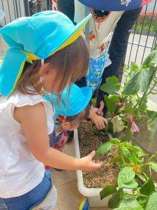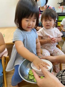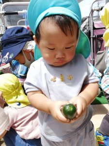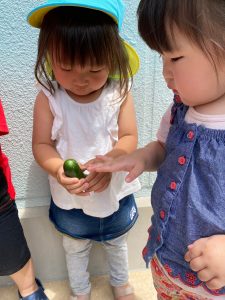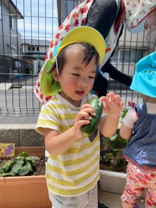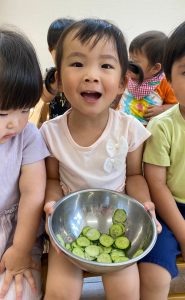 今日ね、みんなで育てたきゅうりが大きくなったから