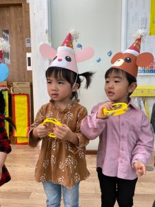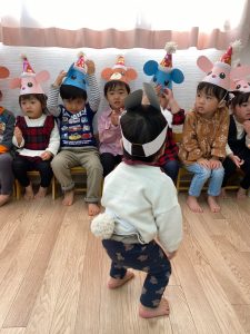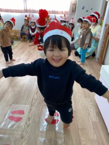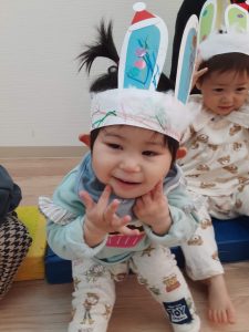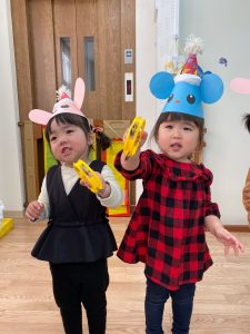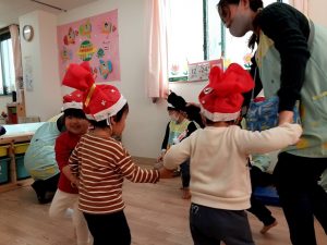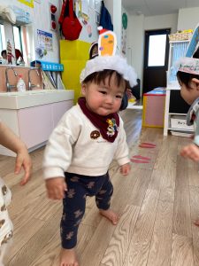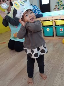 かわいらしい帽子をかぶって先生と仲良くみんなで踊ります!!