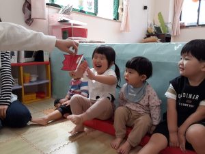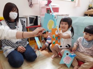 今年度初行事!こどもの日を祝う会をしました。この日までにも、出来上がっていく鯉のぼりをみては皆で歌ったり♪こいのぼりダンスを楽しみました‼