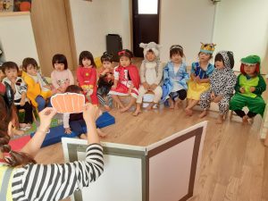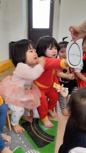 今度は何に変身するのかな??と次々と変身していく、かぼちゃや傘に皆釘付けです!