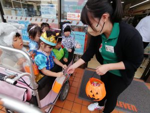 「トリックオアトリート!」と言ったらセブンイレブンのお姉さんがお菓子をくれたよ!