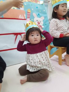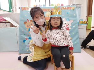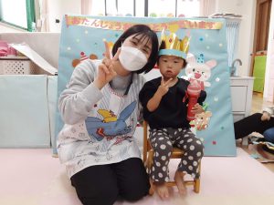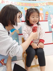 誕生日の子は前に出ると上手に質問に答えてくれました!