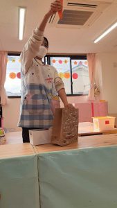 空の袋に野菜や果物のイラストを入れると~なんと!本物が登場!!