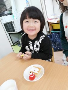 おやつにはとっても可愛いクリスマスケーキが出ましたよ!