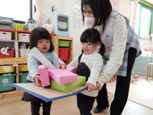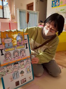 保育士がひしもちの色の意味を説明すると、
