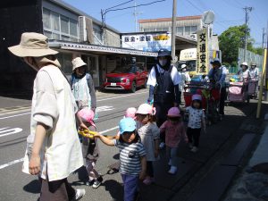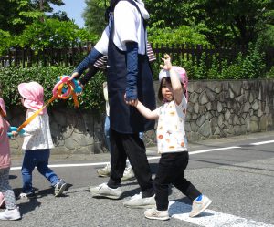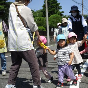 先生達と一緒に「おうだんピッピ!おうだんピッピ!」と横断歩道を渡ります。