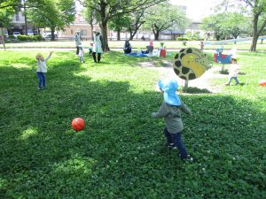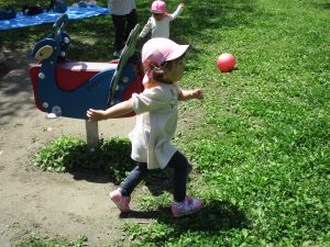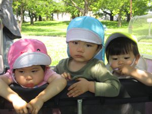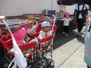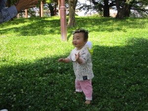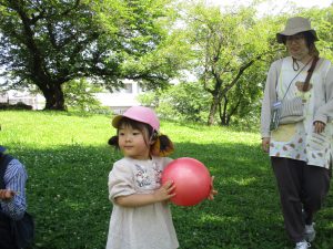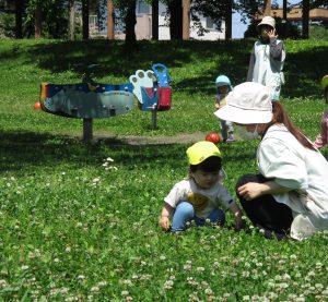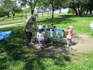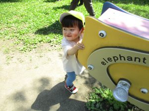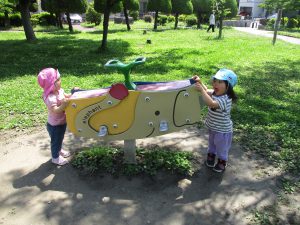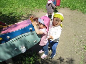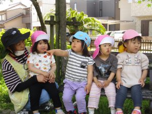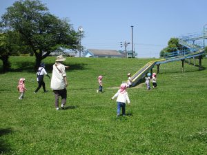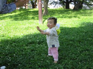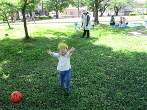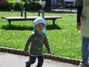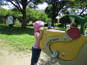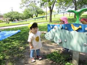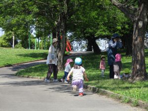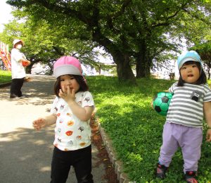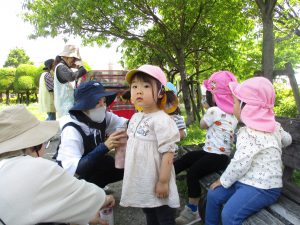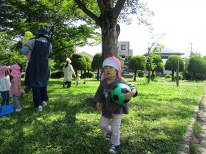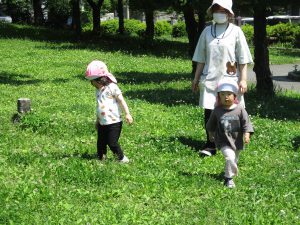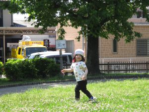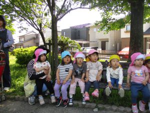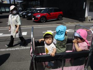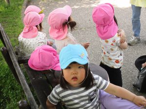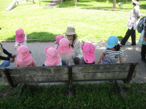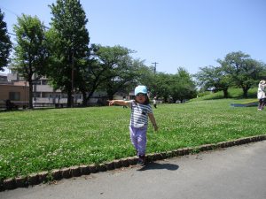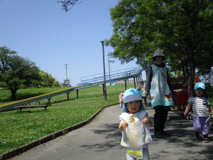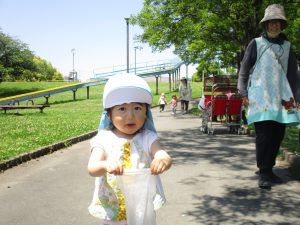 涼しい時間を利用して、近くの公園まで遠足ごっこ。