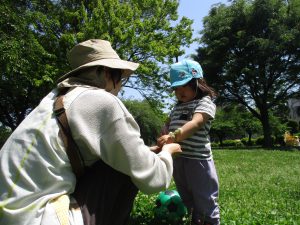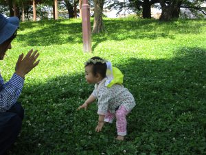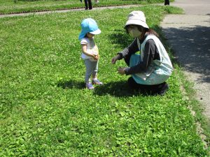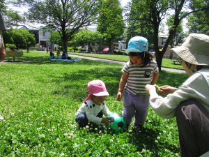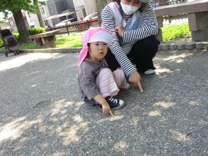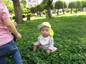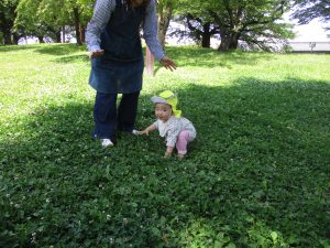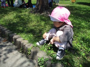 ちょうちょを追いかけたり、てんとう虫を見つけたり。「まてまて~」