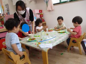 お皿にのせてスイーツ屋さんごっこ。