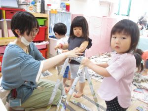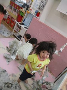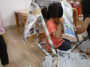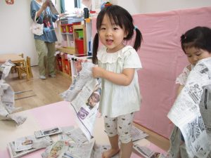 新聞紙遊びは、お子さんたちが大好きな遊びのひとつです。
