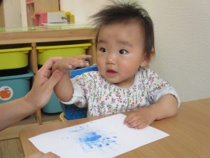 ふたば組のお友だちは先生と一緒に手形ペッタン!