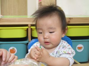 先生がしっかり見守ってくれるなかで、指先についたシールを器用に動かしていましたよ。
