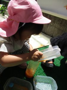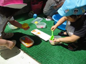 氷が解けた後も、色の変化を楽しみながら遊びました。