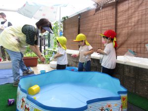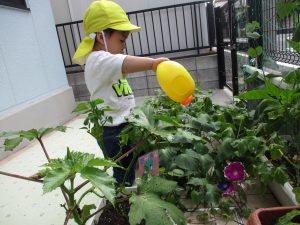 水遊びがてら、子どもたちがせっせと水やりをしてくれたおかげで、