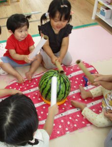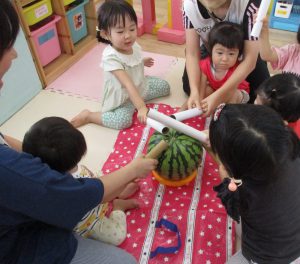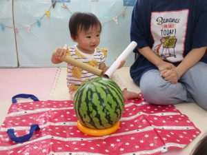 すいかわりの経験もしましたよ。みんなでえ~いっ!