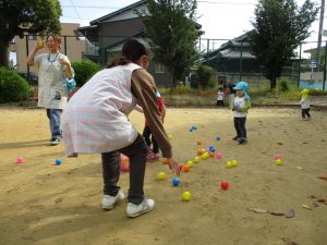すぐそばに落ちているけど、ねらいは別のボールかな?(笑)