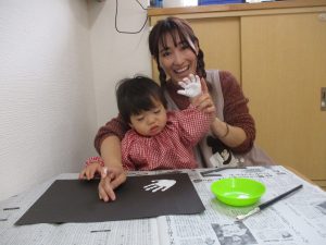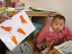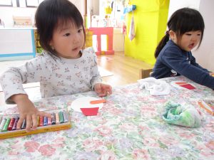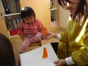 ふたばぐみのお友だちは、絵の具にもすっかり慣れっこ。