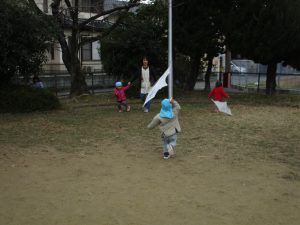 凧あげスタート~!!!わ~い!!!