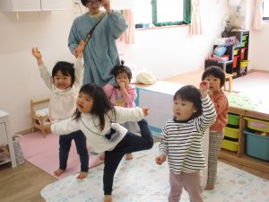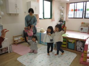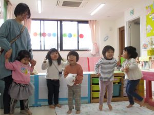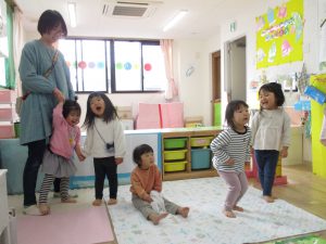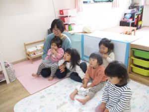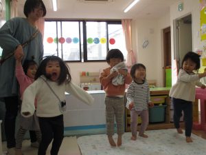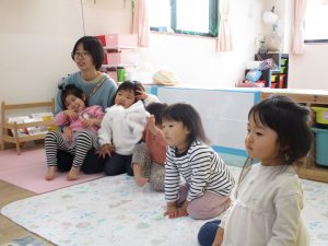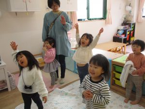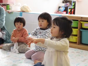 リズムや言葉を聞いて反応しながら楽しい時間を過ごしました。