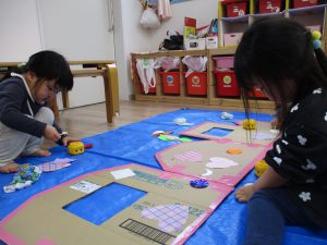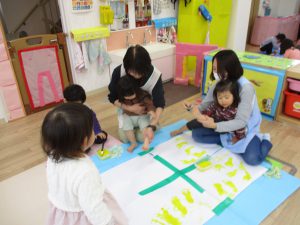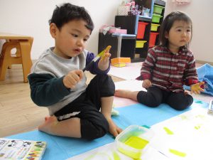 そらぐみのお友だちは、足の裏に色をつけてペタペタ👣👣👣・・・