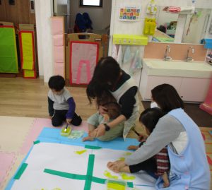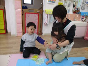 ふたばぐみの新しいお友だちも先生と一緒に。