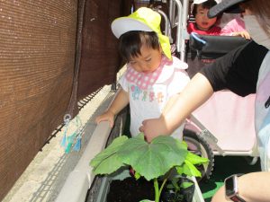 「あのね。これはオクラっていうんだよ」 「ピーマンとさつまいももあるよ」