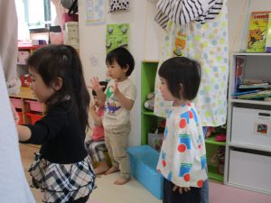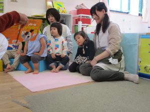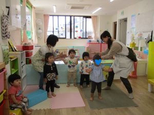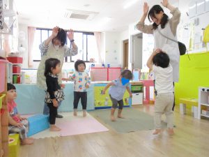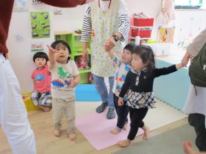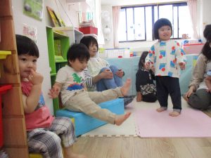 ジャンプしたり、クラップしたり。足をブラブラ~!!!