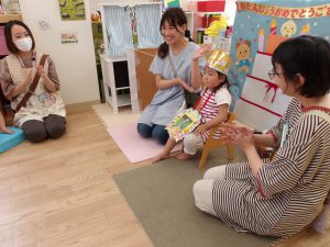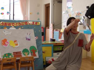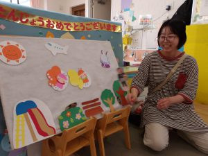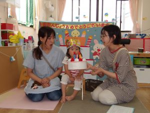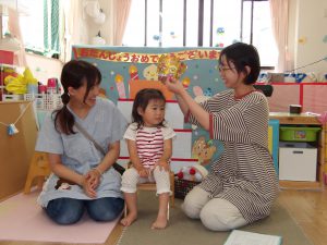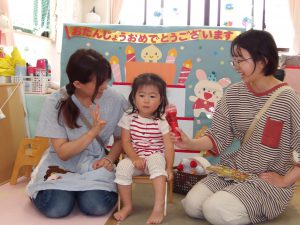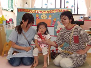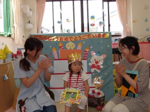 先生と一緒にインタビューに応えましたよ。「3歳になりました~」