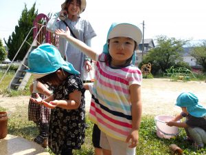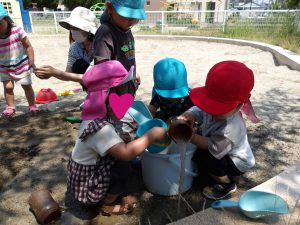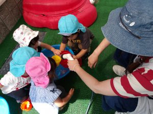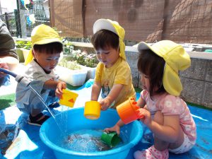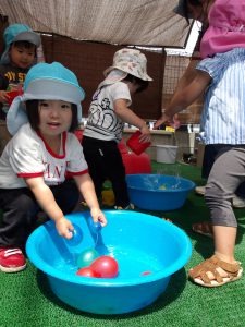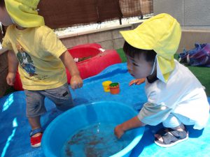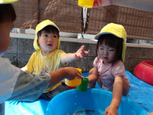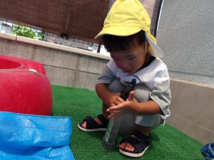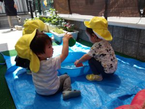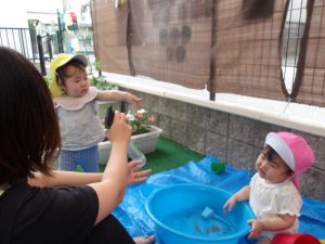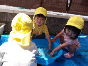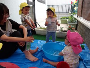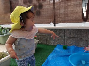 水だけが入った容器やたらいを選んで、指先だけをちょん!!