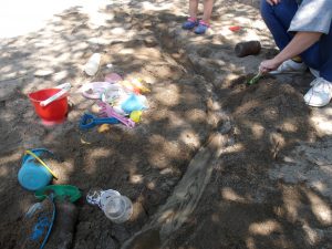 泥というよりは、水を混ぜた砂がザラザラになる感触を手足でで感じる経験をしています。