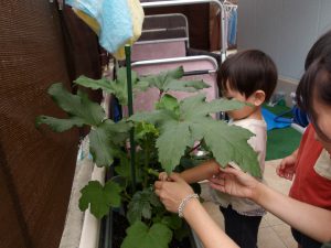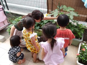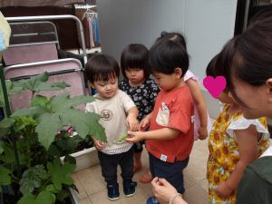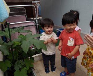 「どこどこ~?」と、たいようぐみのお友だちが覗いて・・・
