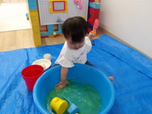 「うわぁ~、みどりだ~!まぜまぜ・・」 「きもちい~」