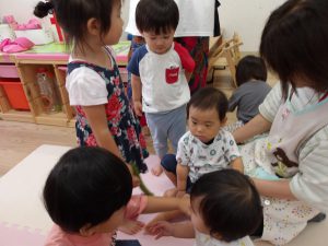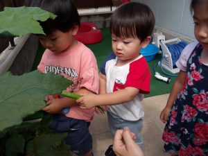 オクラ披露の後ろで可愛らしい愛❤が始まろうとしています(笑)