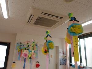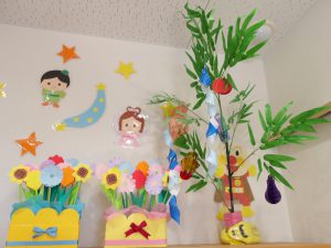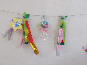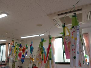 室内には、吹き流しや可愛らしい七夕飾りがたくさん飾りつけられました。✨✨
