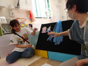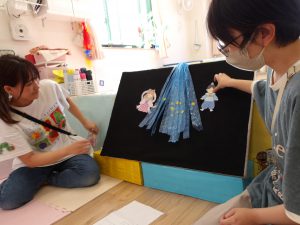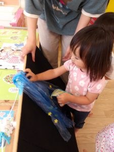 次に先生が織り姫様と彦星様のお話をパネルシアターで紹介してくれ、