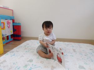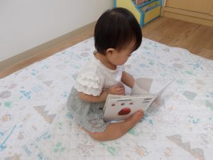 ひとりでおすわりして、絵本がめくれるようになったよ。すごい?(すごいすごい!!)