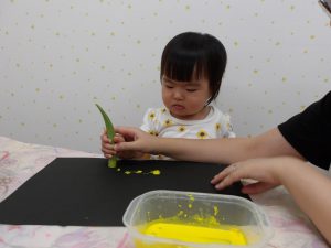 フィリオ便り オクラスタンプ。【ふたばぐみ】 2024年9月13日 まだまだオクラが最盛期継続中です。 ふたばぐみのお友だちもオクラスタンプに挑戦してみました。 先生と一緒にもちもち、ペタペタ。 ひとりでもできたよ。 できたね~じょうず~👏👏 ゆびでもペタペタ。 オクラスタンプ、いっぱい楽しみました~😊
