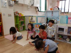 最後はみんなでアムアム美味しく食べる真似っこ。🍎🍊