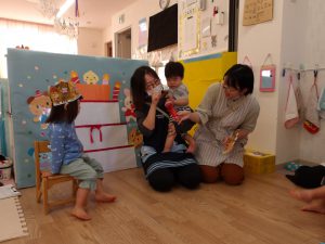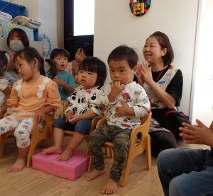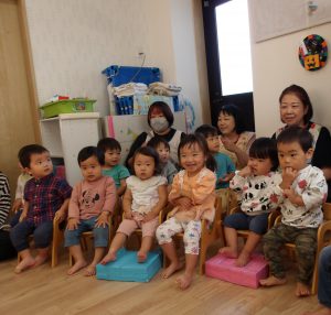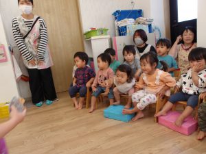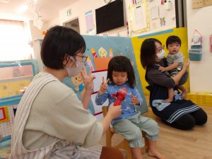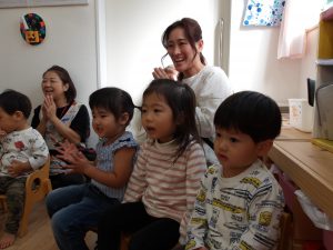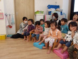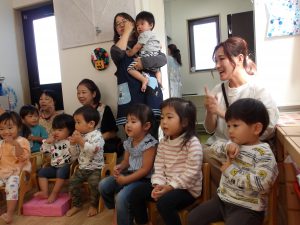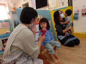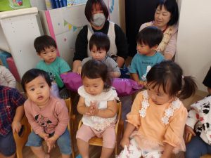 みんなの前に出るのが嬉しいお友だちと、抱っこしててほしいお友だち。